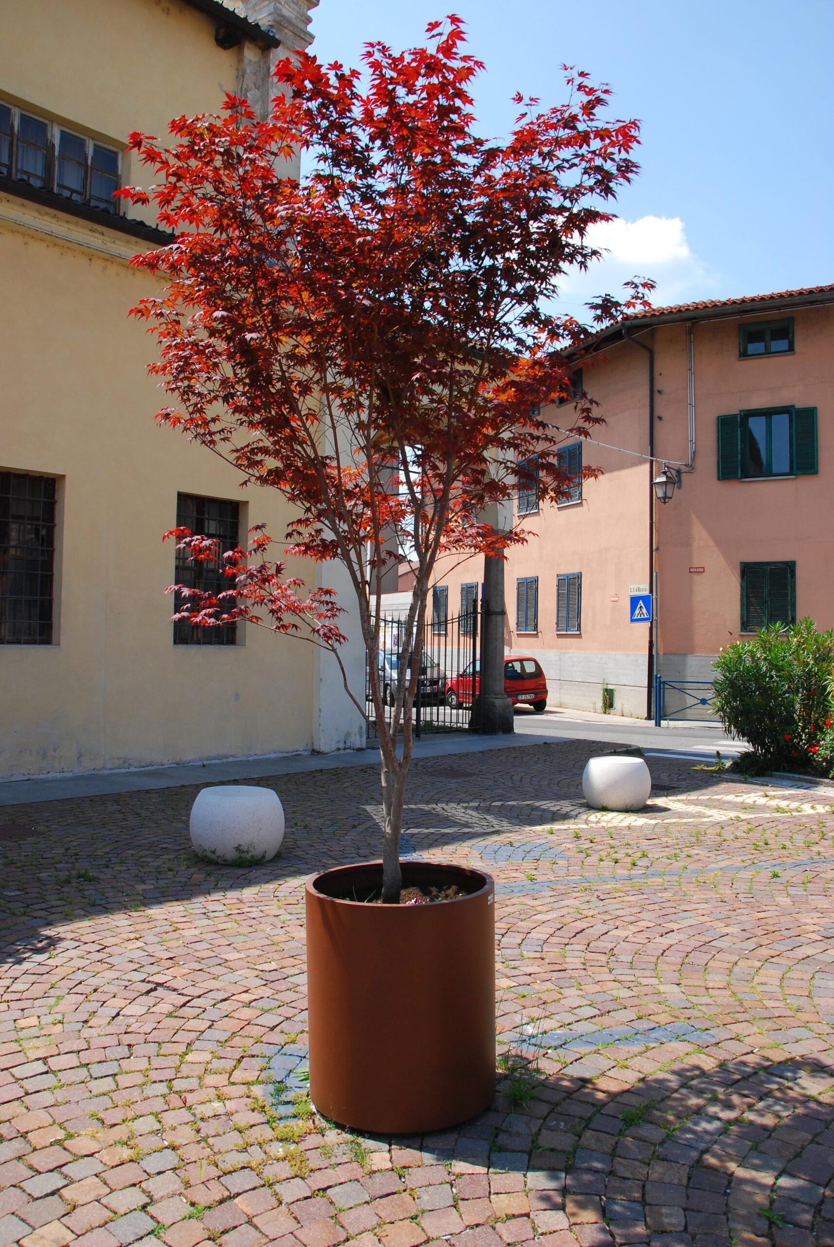 Le fioriere integrate, posizionate alla base delle transenne, aggiungono un tocco di verde e colore, contribuendo a creare un’atmosfera accogliente e vivace. Le fioriere possono essere realizzate in diversi materiali, come acciaio corten o lamiera verniciata, e progettate per ospitare diverse tipologie di piante, a seconda delle esigenze del comune e del contesto urbano.