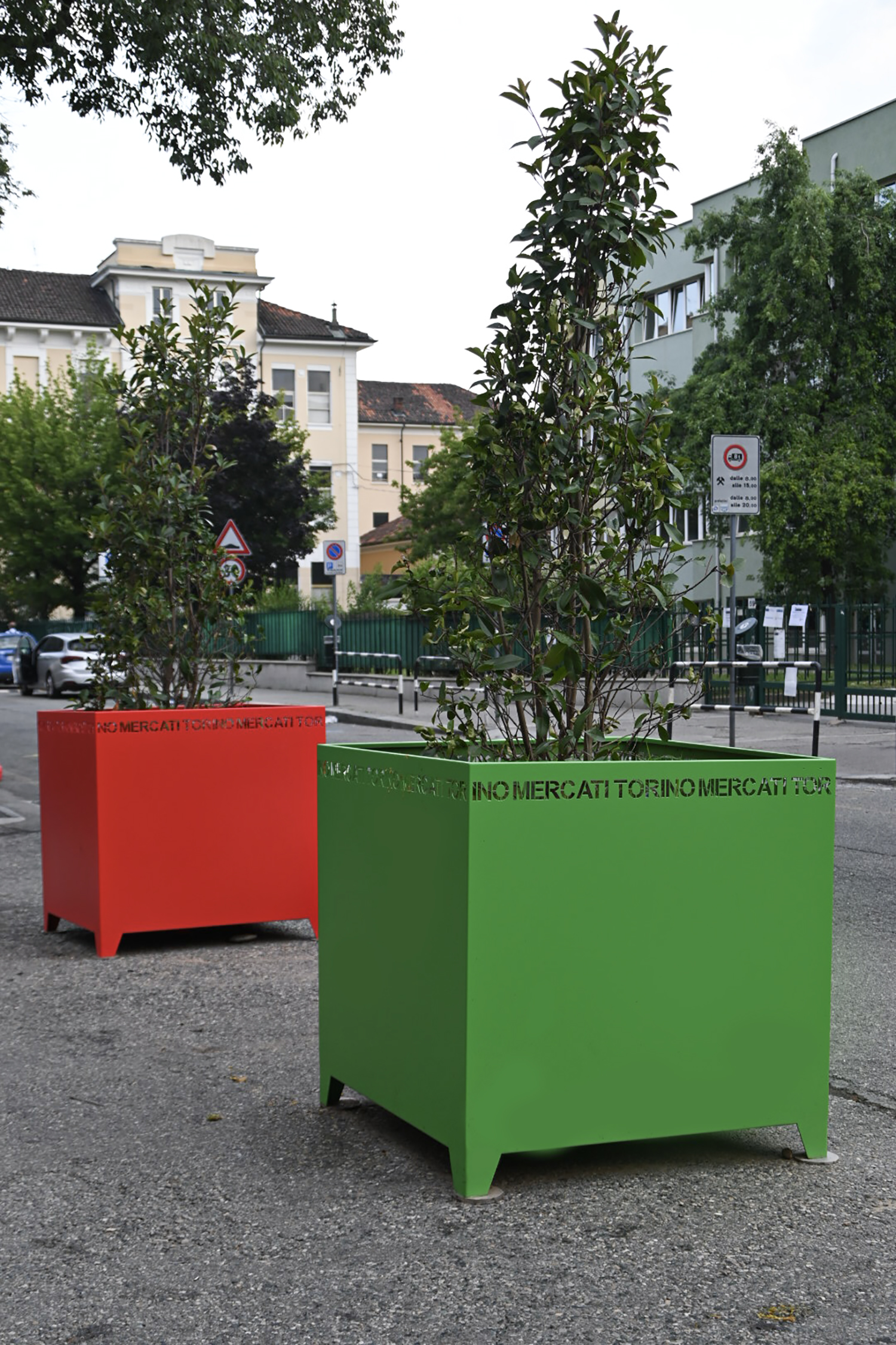 Realizzazione di fioriere quadrate in metallo verniciato, tutte di uguali dimensioni, installate nei mercati di Torino. Realizzate in acciaio zincato e verniciato a polvere, sono state progettate per integrarsi negli spazi urbani con funzionalità e semplicità. I colori scelti — rosso, verde, giallo e blu — contribuiscono a ravvivare l’ambiente mercatale, creando un contesto più accogliente e ordinato. Le fioriere ospitano piante ornamentali, con la funzione di abbellire le aree pubbliche, rendendole più piacevoli e curate per cittadini e visitatori.