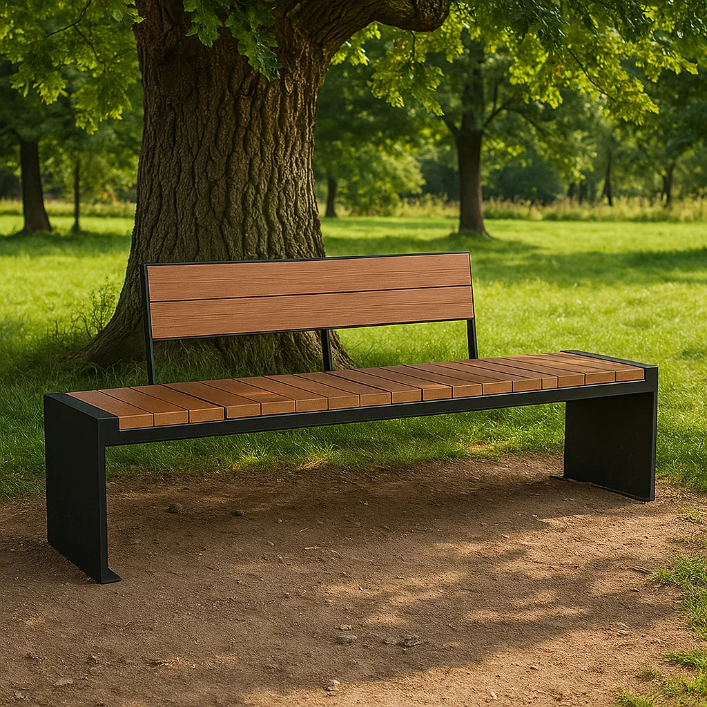 Il modello base è interamente in lamiera di acciaio verniciata su impianto di verniciatura a polvere, ma ciò che la rende davvero unica e “friendly” è la plastica riciclata che è stata utilizzata per realizzare la seduta e lo schienale.