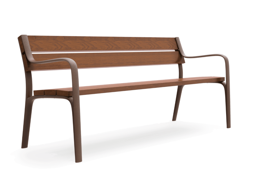 La panchina è composta da una seduta e uno schienale formati da doghe di legno massiccio, resistenti alle intemperie e disposte in modo da garantire comfort e drenaggio dell’acqua.