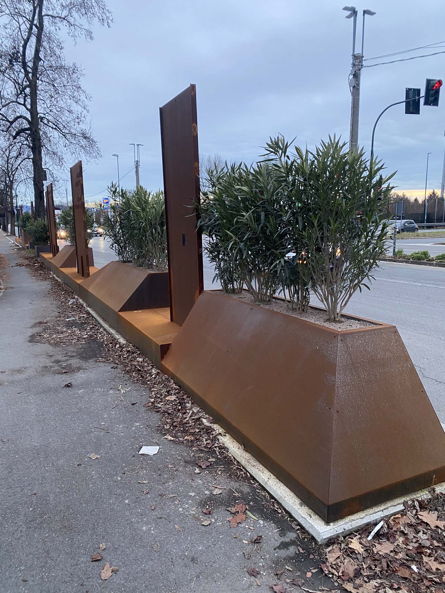 L’ installazione è caratterizzata dall’impiego di materiali di alta qualità, come il corten e le lamiere tagliate a laser, e da un design personalizzato che tiene conto delle specificità del luogo e delle esigenze del comune.