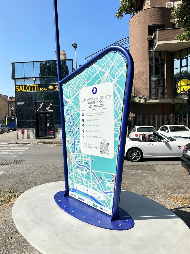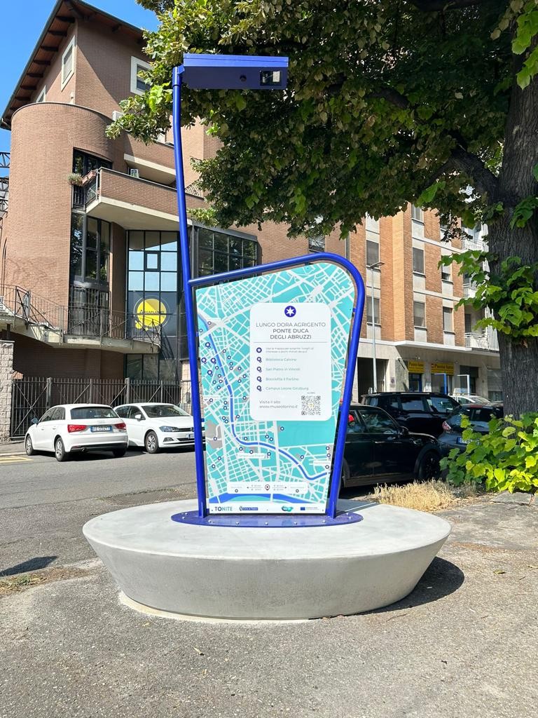 Questo pannello, pensato per fornire informazioni utili sul quartiere, come mappe, punti di interesse e servizi, è incorniciato da un tubolare metallico che ne esalta la grafica e ne garantisce la protezione.