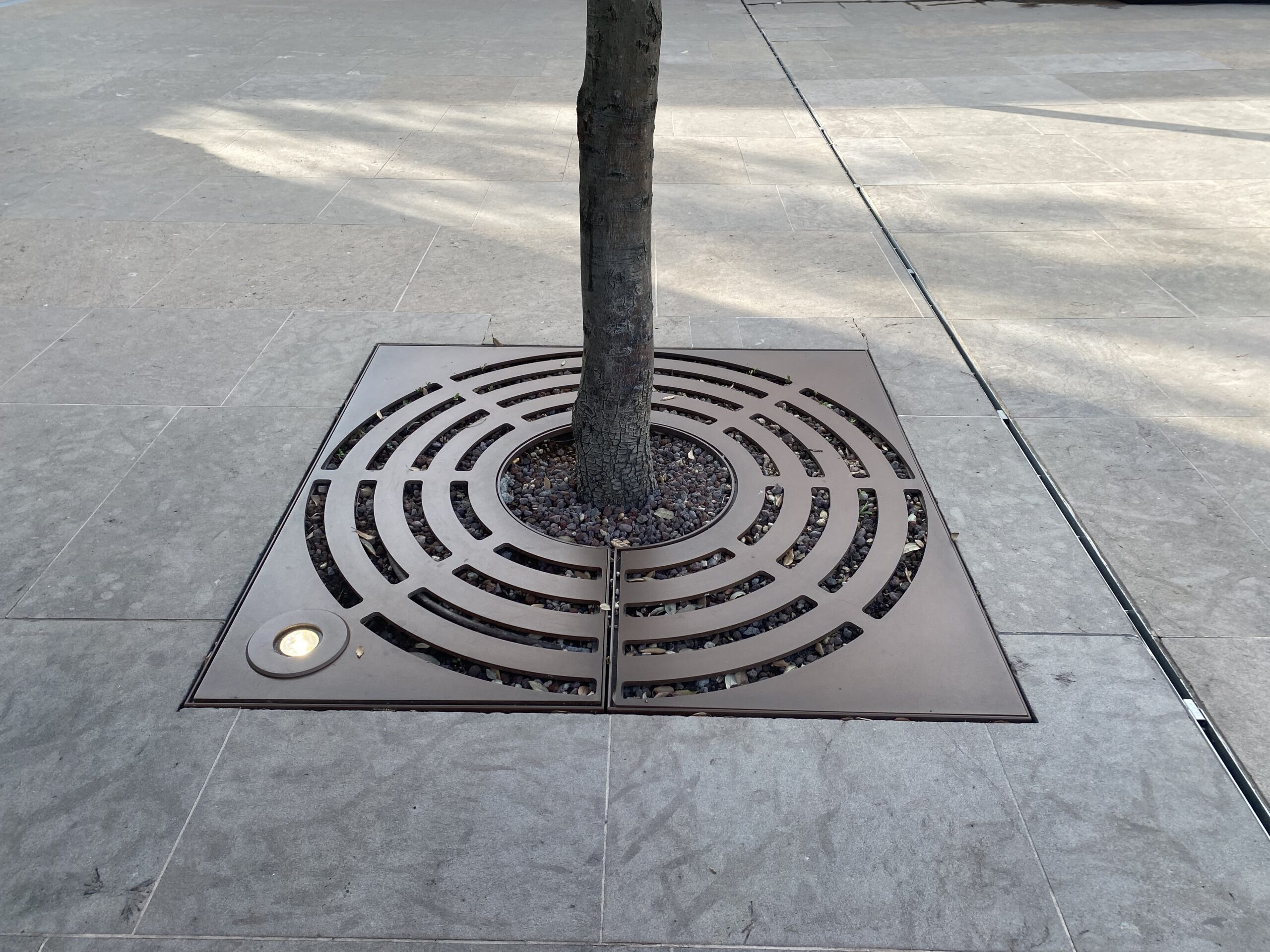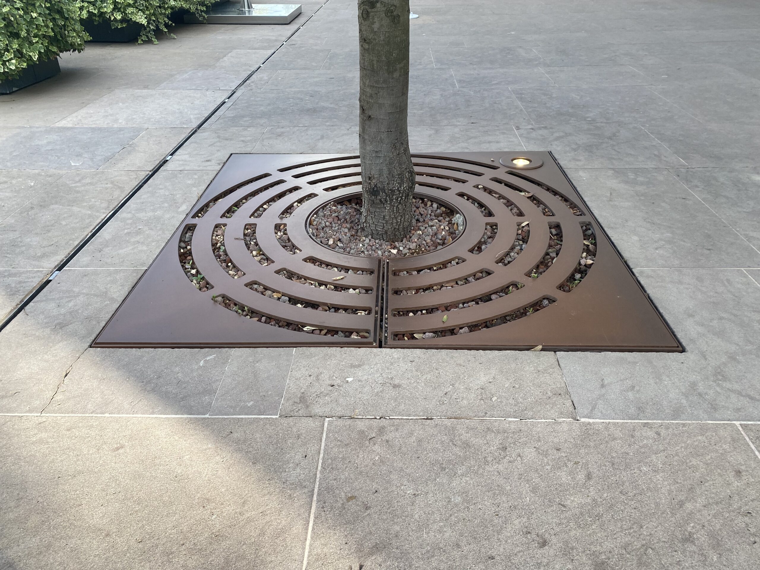 Il design a base piana dei salva pianta assicura la protezione delle radici e degli arbusti senza ostacolare il passaggio dei visitatori, mentre la struttura permette un facile accesso per le operazioni di manutenzione. Un elemento distintivo di questi salva pianta è l’integrazione di un faro LED, che durante le ore notturne illumina l’albero, creando un suggestivo effetto scenografico e valorizzando il verde urbano.